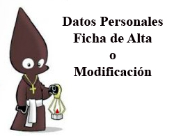 Pulsando en este enlace descargarás el documento en formato PDF que posteriormente puedes hacernos llegar, una vez cumplimentado, a nuestra secretaría; bien por correo postal, a nuestra dirección de correo electrónico o entregarlo e nuestro horario de atención al hermano en nuestra sede social o administrativa.